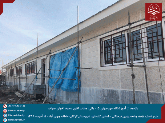 طرح شماره: ٨٨٥ جامعه ياوری فرهنگی بانی: جناب آقای سعيد اخوان صراف استان گلستان، شهر گرگان، منطقه جهان آباد 11 آذرماه ۱۳۹۸ هدیه میزهای آموزشی بافکو به دبستان محمد وطیبه ارفع نیا – 26 آبانماه 1398 تقدیم روپوشهای اهدایی به دانشآموزان عزیز دبستان روستای گلنام – سال تحصیلی 1398