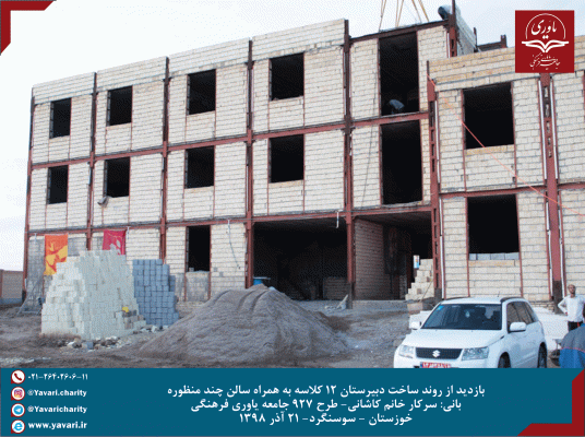 این مدرسه در استان خوزستان،سوسنگرد، درحال ساخت میباشد و به امید خدا با آغاز سال تحصیلی جدید مورد استفاده دانشآموزان عزیز این منطقه قرار خواهد گرفت.