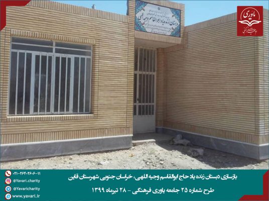 اين دبستان كه در سال ١٣٦٦ به همت جناب آقای مهندس وجيه اللهی ساخته شده بود، بنا به درخواست آموزش و پرورش قاين مورد بازسازی قرار گرفت.