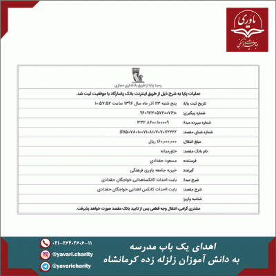 واریز هدایای شما یاوران عزیز به خوابگاه های استان های خراسان جنوبی، سیستان و بلوچستان، هرمزگان و [...]