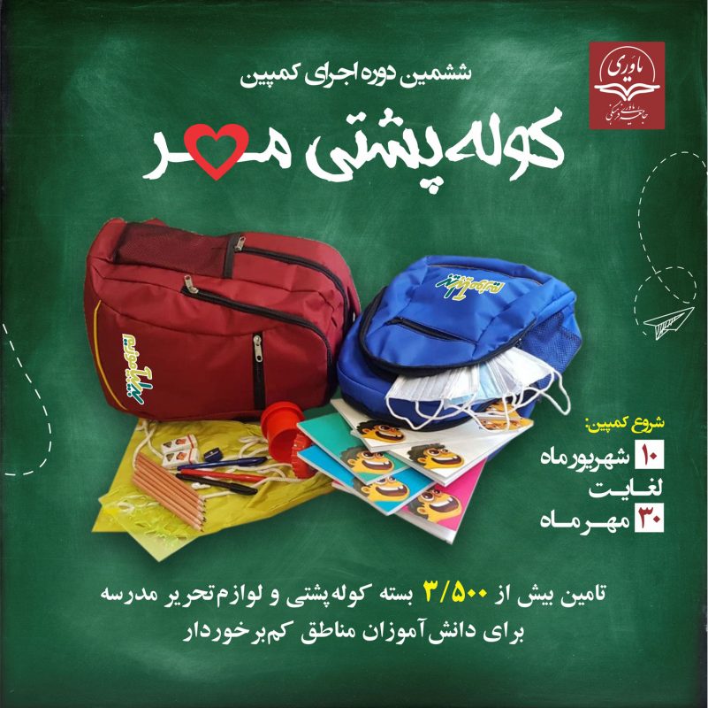 ❤️ ششمین دوره اجرای کمپین🎒کولهپشتی مهر🎒 هدیه کولهپشتی و لوازمتحریر به دانشآموزان عزیزمان در مناطق کمبرخوردار